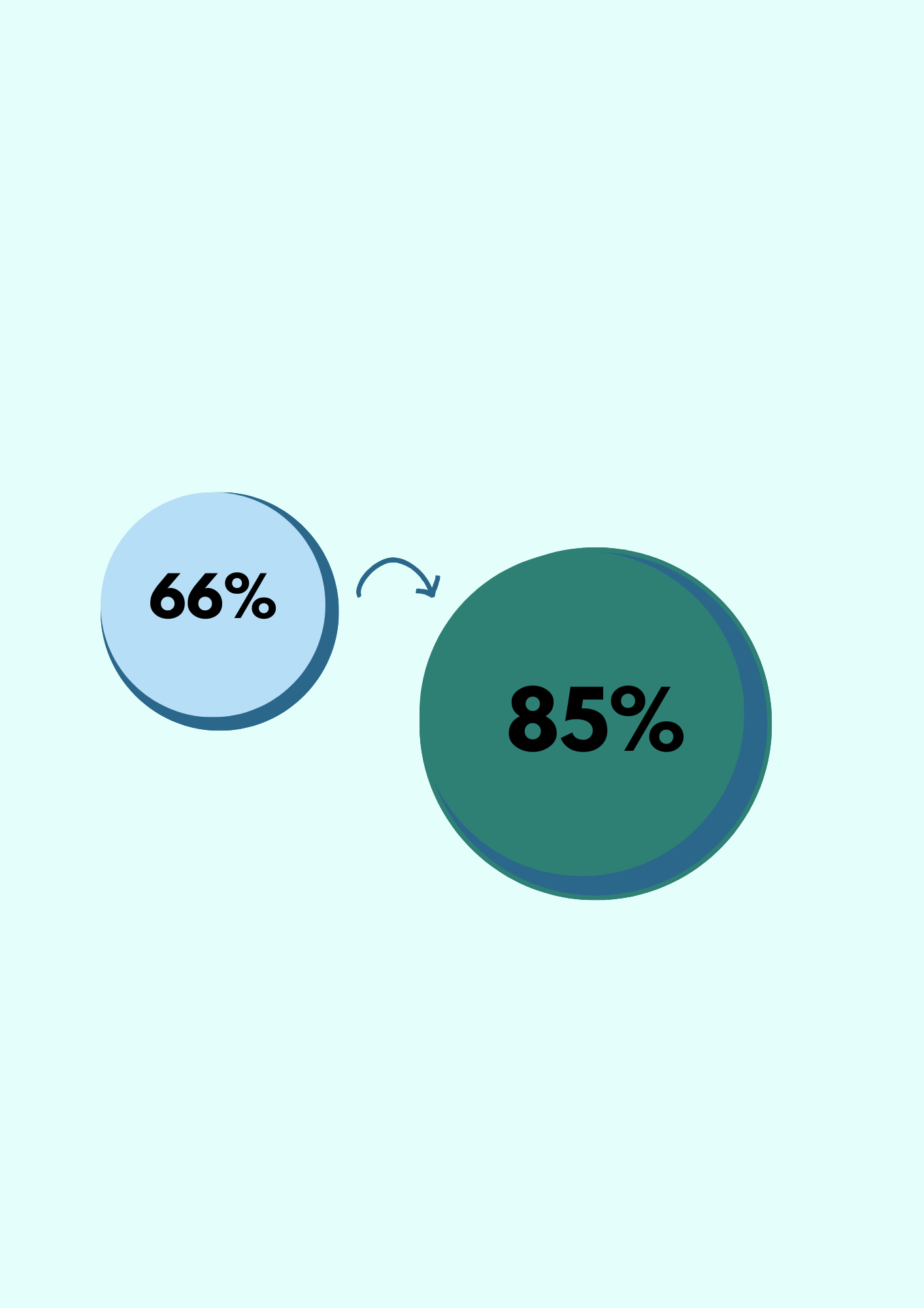 After DNA, 85% of students felt that university was for them, compared to 66% before.