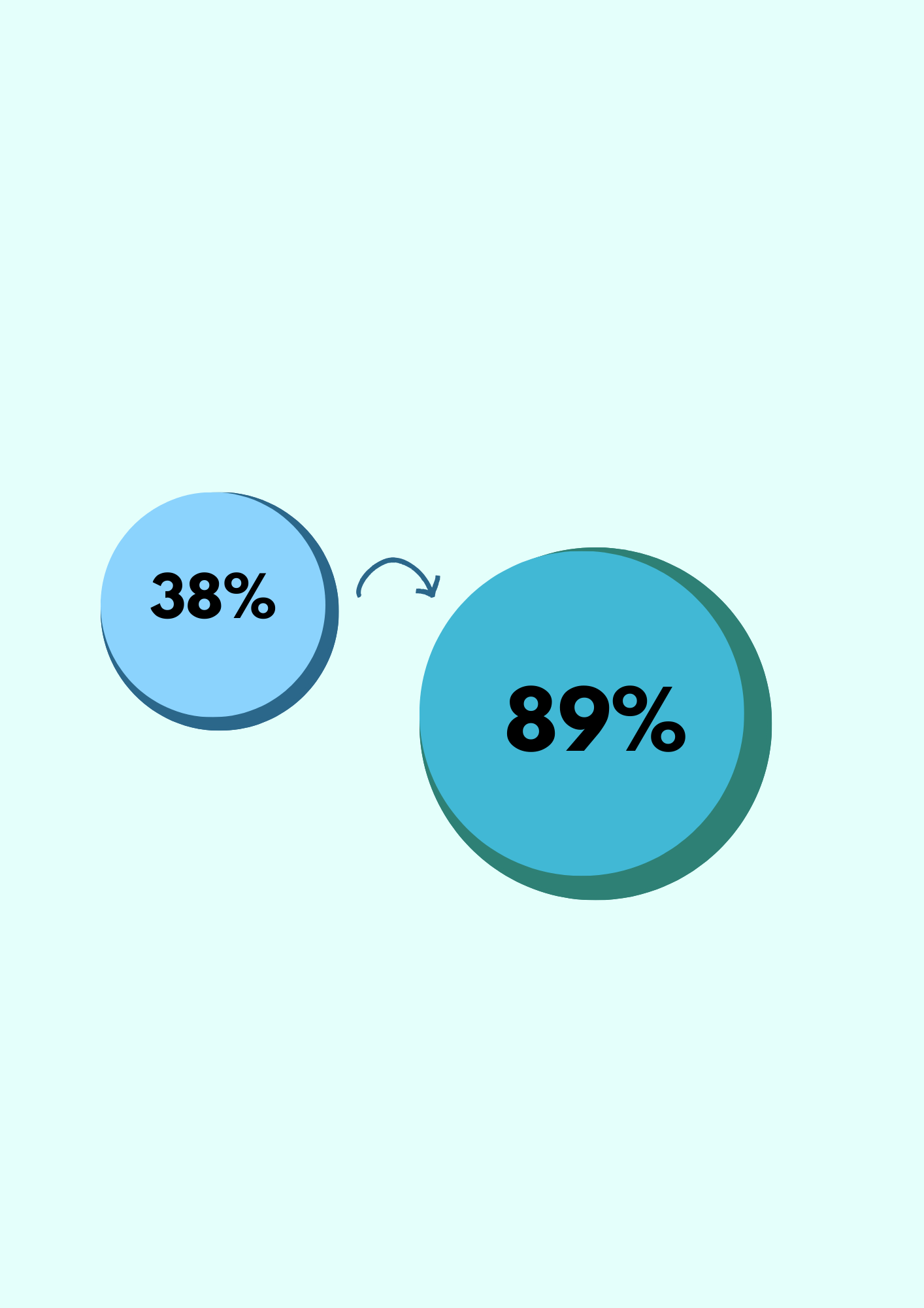 After DNA, 89% of students felt they had a good knowledge of neuroscience, compared to 38% before.